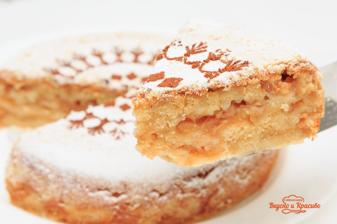 Пирог получается очень нежным по вкусу. Что-то между песочным тортиком и шарлоткой, только более влажным.
