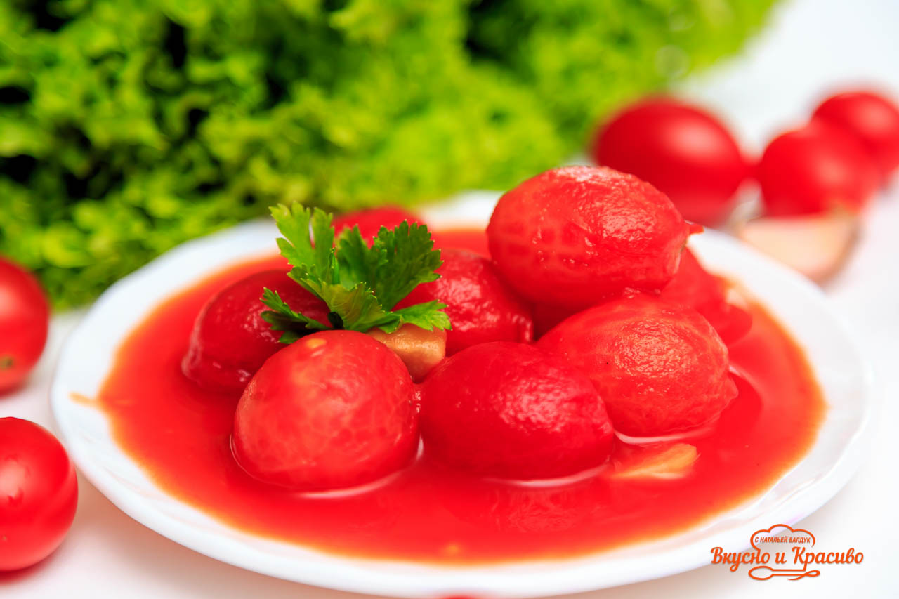 По этому рецепту помидорки Черри в заливке можно приготовить «голенькими» — без кожицы. Почему? — спросите вы…