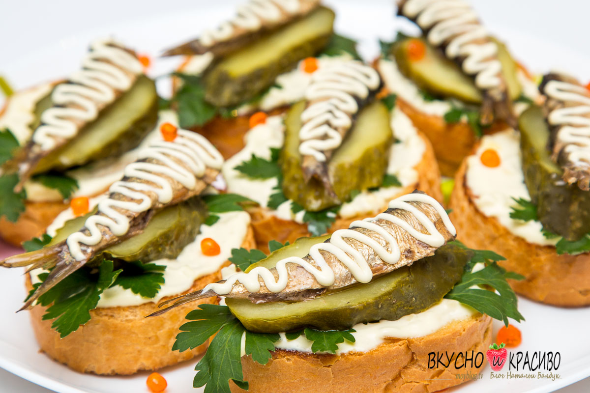 Правильные бутерброды со шпротами готовы. Вкусно и Красиво!