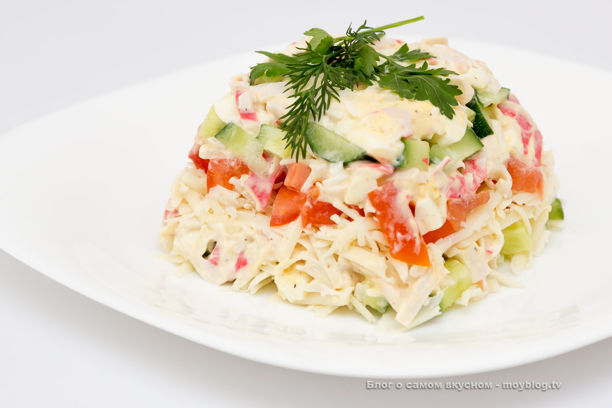 Яйца измельчить, крабовые палочки нарезать кубиками, добавить майонез, перемешать.