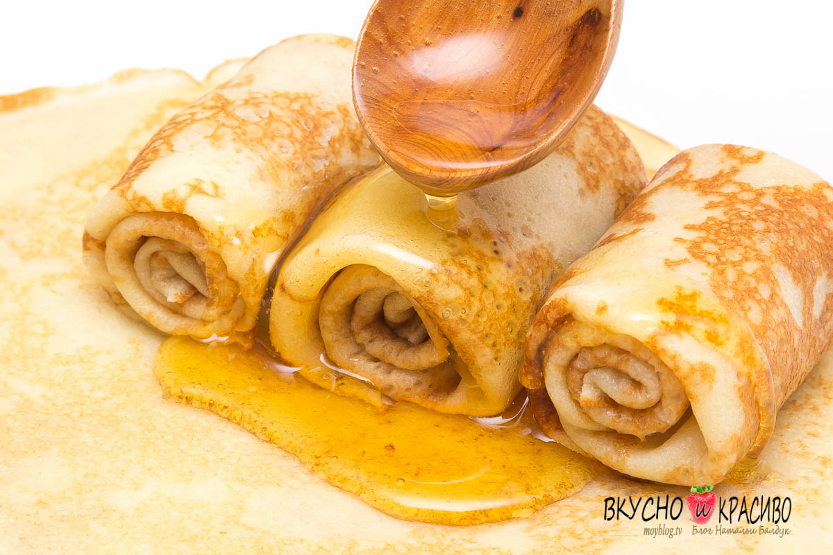 Но, опять же на любителя. Я, для себя и маленькой дочери блины (неважно из какого теста) ни чем не сдабриваю. Нам и так вкусно. Я лучше, к готовому блинку, сгущёночки или медку добавлю побольше.