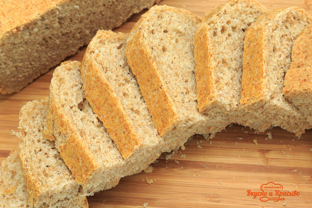 Мой хлеб с цельно зерновой мукой, поэтому он получился несильно высоким, но за то — он намного полезнее чем его родные братья «заведённые» на чисто белой муке.