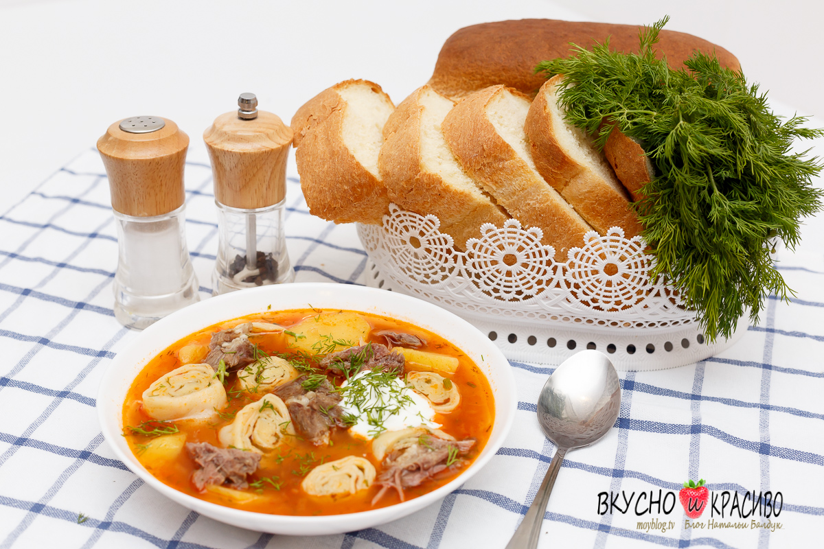 И именно на обеде у своих соседей я впервые «познакомилась» с этим супом. Есть несколько вариантов приготовления такого супа — это с красной фасолью, с молоденькими кабачками, или просто с томатами или томатной пастой. Супчик довольно густой, очень наваристый и очень сытный.