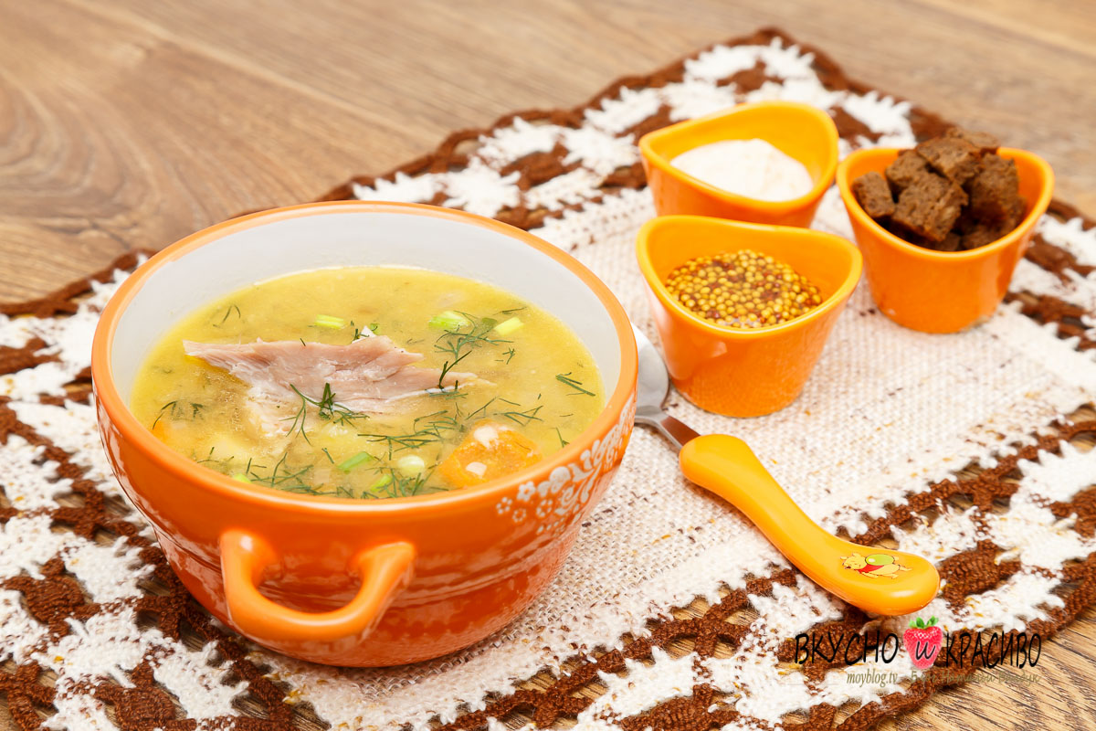 Моя маленькая дочка отказывается кушать блюда из гороха, а вот в таком исполнении кушает. Супчик получается очень ароматным и вкусным. Мы его называем гороховый без гороха.