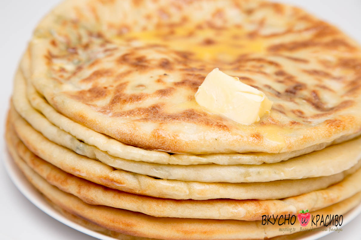 Как только лепёшка пропечётся, перекладываем на плоскую тарелочку. И сразу же, обильно обмазываем сливочным маслом. Горяченькие хичины, по ходу выпечки (один за одним) складываем в тёплую, сухую кастрюлю. Незабываем закрывать кастрюлю крышкой.