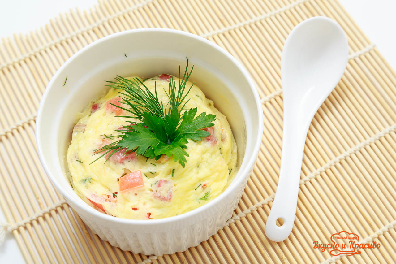 А это у нас — простейший рецепт полезного и быстрого блюда «омлет по-русски» в микроволновке.