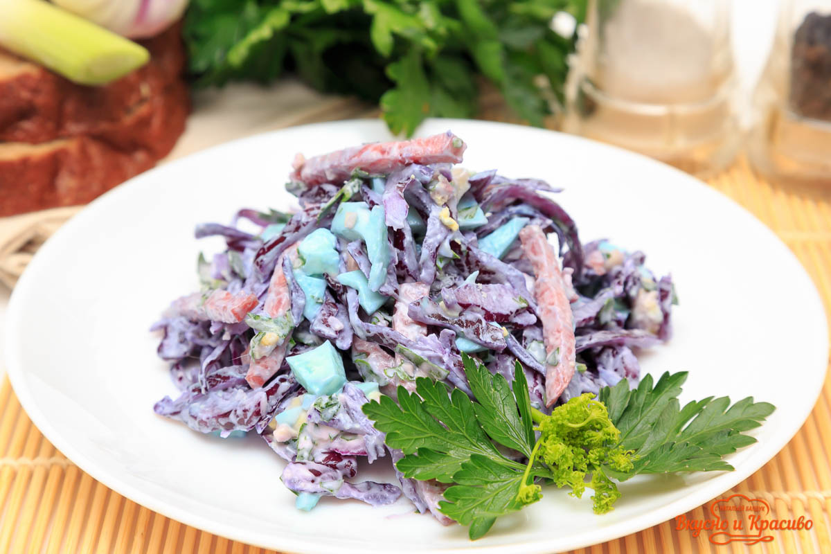 Необычный салат из краснокочанной капусты готов! Можно снимать пробу…