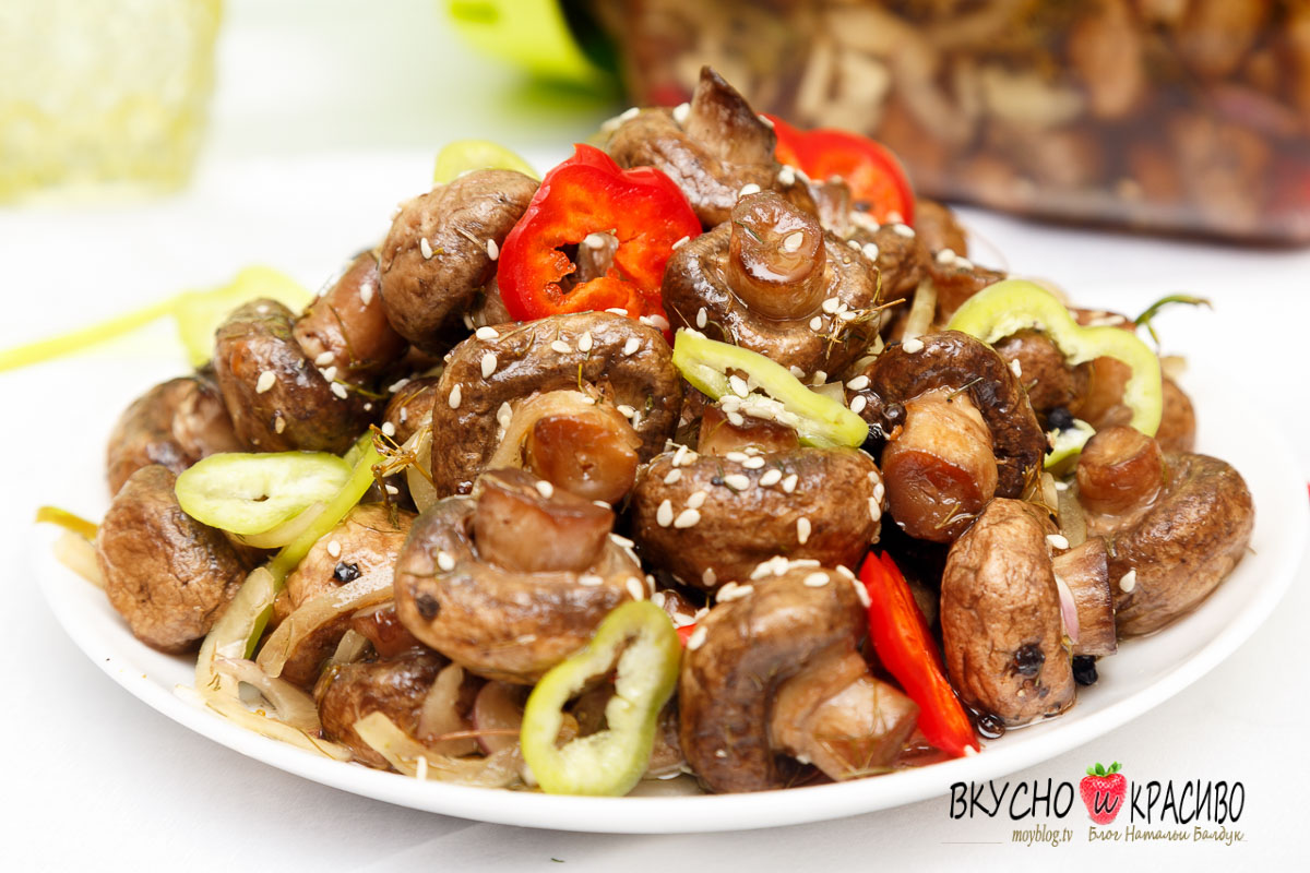 Ох уж эти слащавые маринады в магазинных грибах. Такое ощущение, что производители заливают грибы огуречным или томатным рассолом для консервирования. А ещё хуже, если это просто белёсенькая жидкость без специи, особенно в таком маринаде плавают шампиньоны. Как можно вообще такие грибы употреблять в пищу. Приходится заправлять такие горе солёные грибы майонезом, уксусом, огромным количеством лука с растительным маслом, да так что вкуса грибов то уже и не слышно.