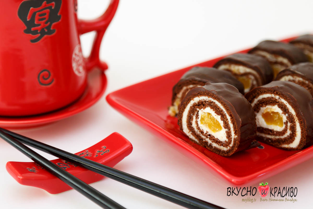Готовые роллы убираем в холодильник до полного застывания шоколада.